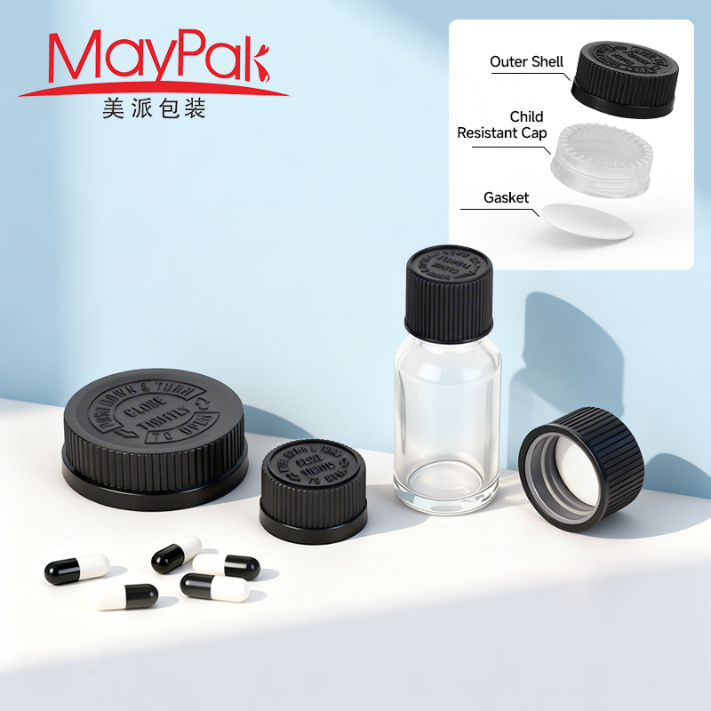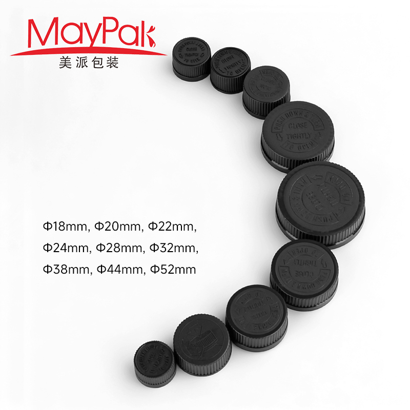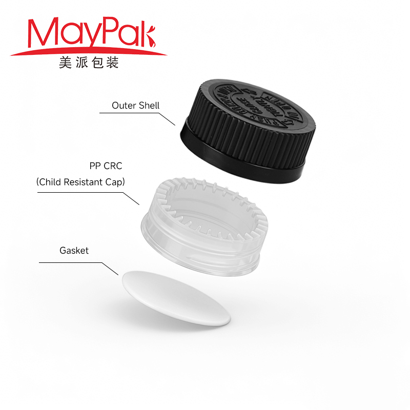 High Quality 18mm 20mm 22mm 24mm 28mm 32mm 38mm 44mm 52mm Plastic Pressure Screw CRC Child Resistant Cap for Bottle – Maypak